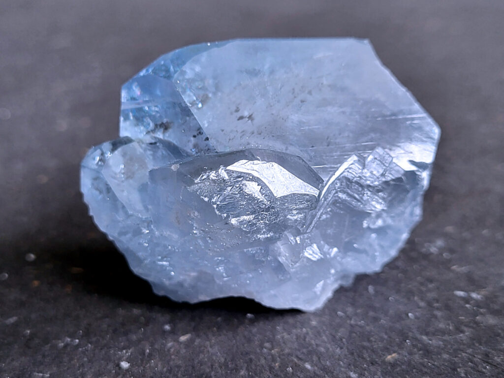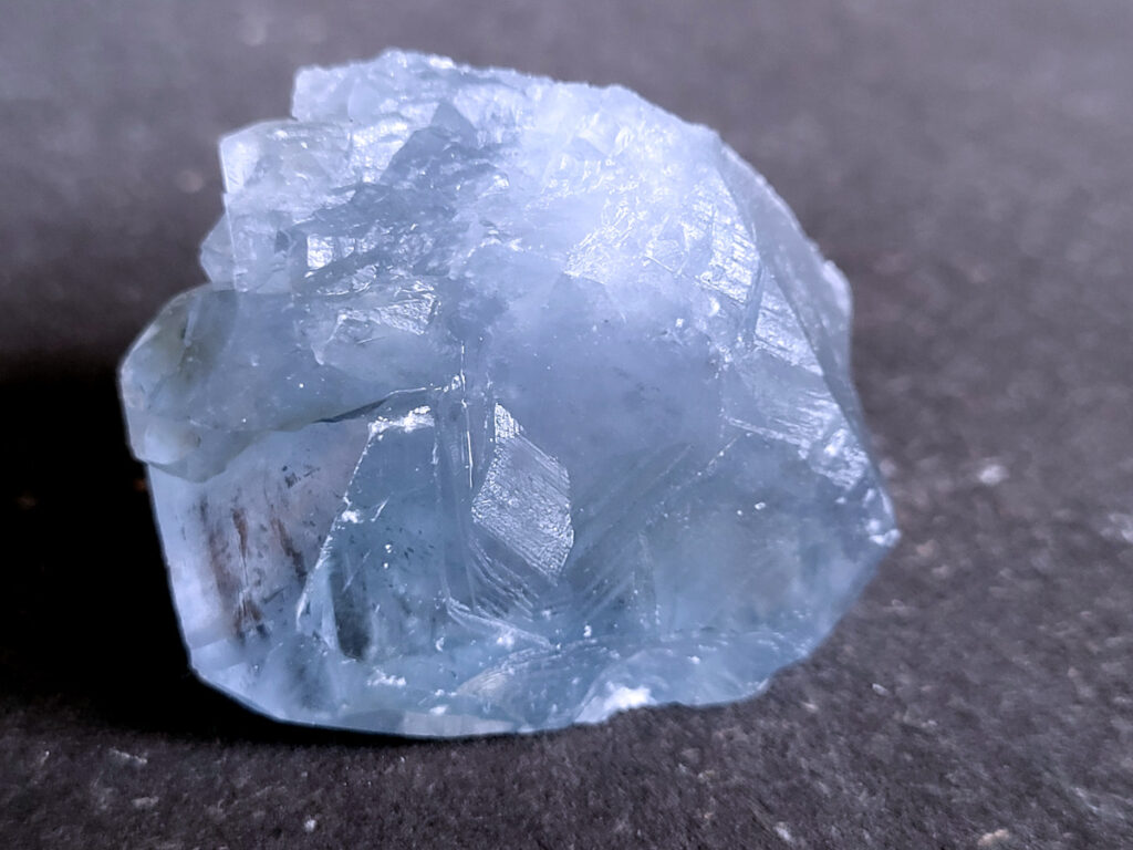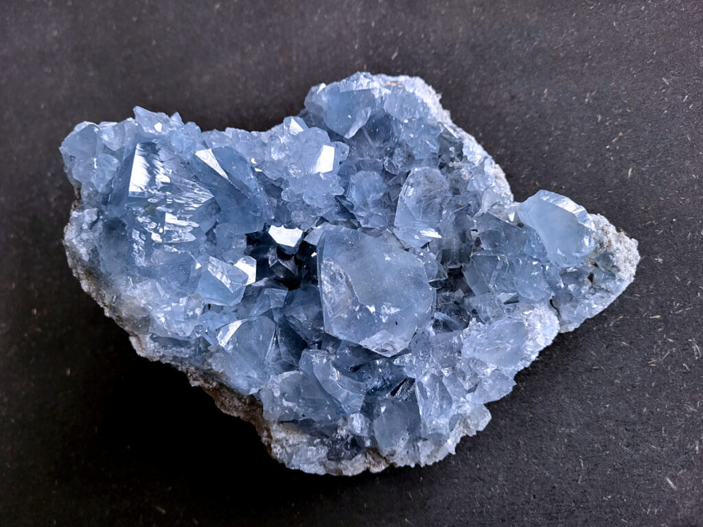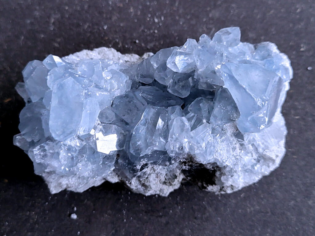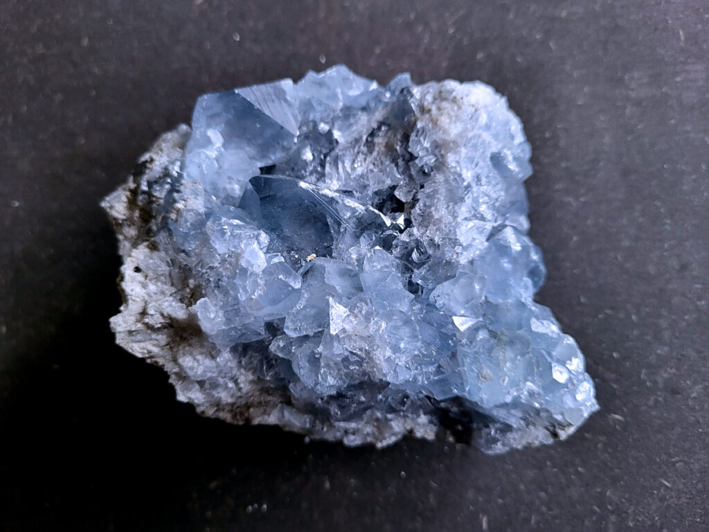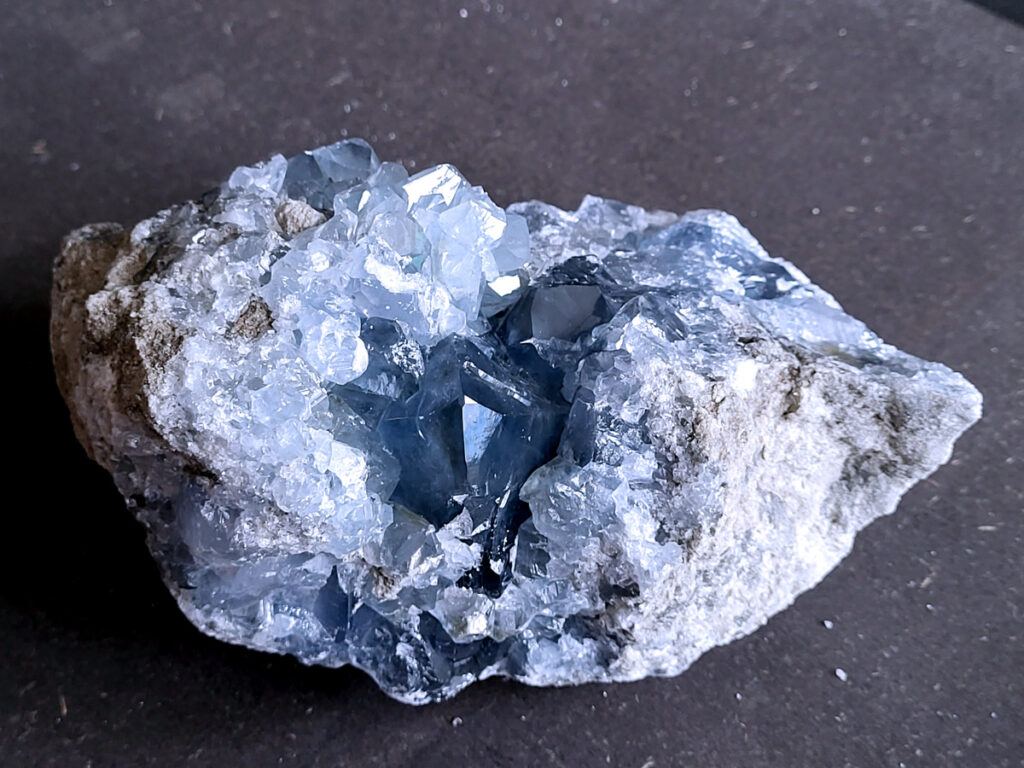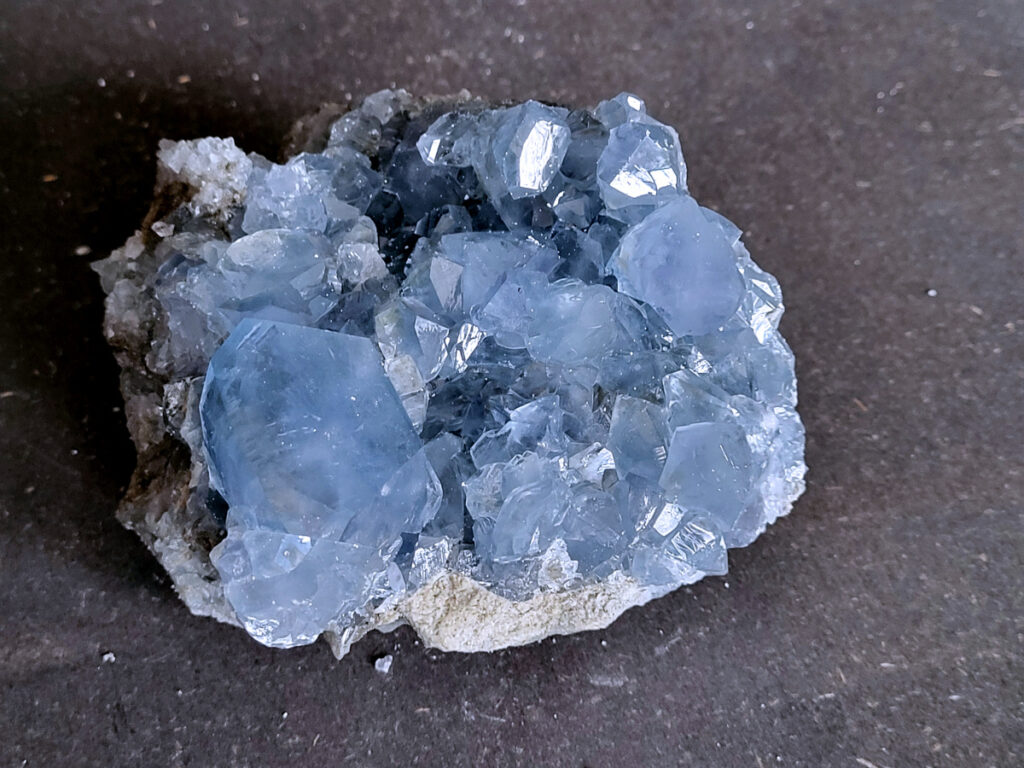 Celestien is een gevoelige steen en kan beschadigen door water of zout.