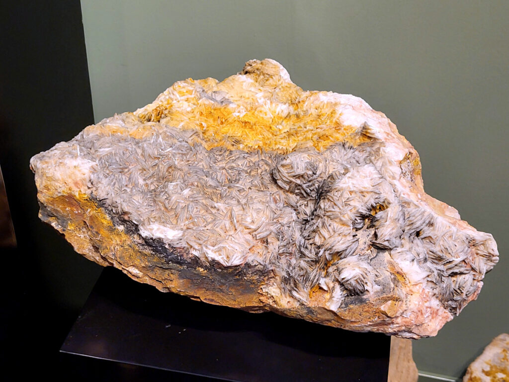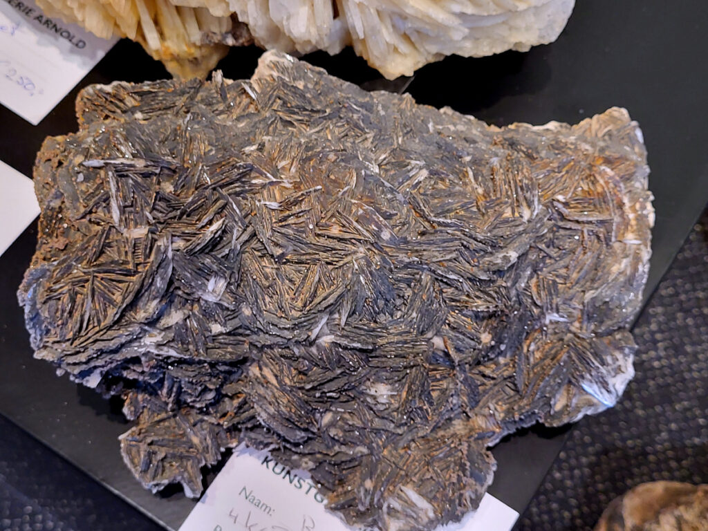 Structuur: Naaldvormige of vezelachtige kristallen groeien vanuit een kern naar buiten, wat resulteert in bolvormige, druifachtige formaties.